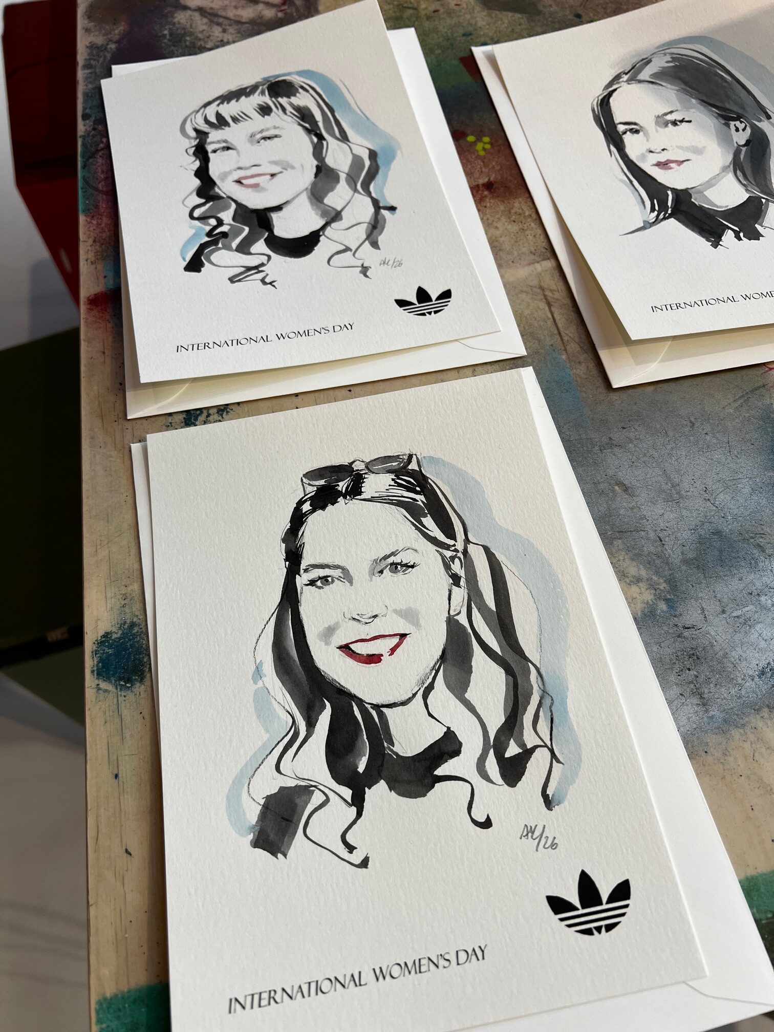 Umgeben von der lebendigen Atmosphäre des Stores konnten sowohl Passanten auf der Straße, als auch Besucher im Laden dabei zusehen, wie die Porträts Schritt für Schritt entstanden. Mit Tusche und Pinsel illustrierte ich die Teilnehmerinnen live vor Ort und erweckte jede Zeichnung mit wenigen, präzisen Linien zum Leben.