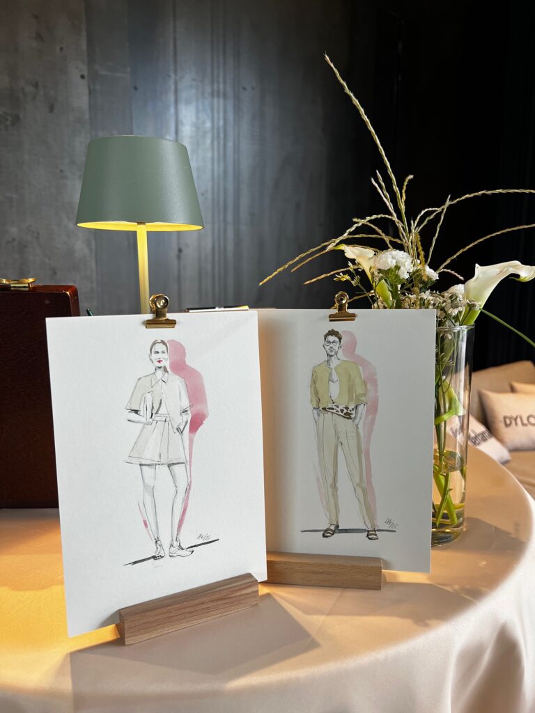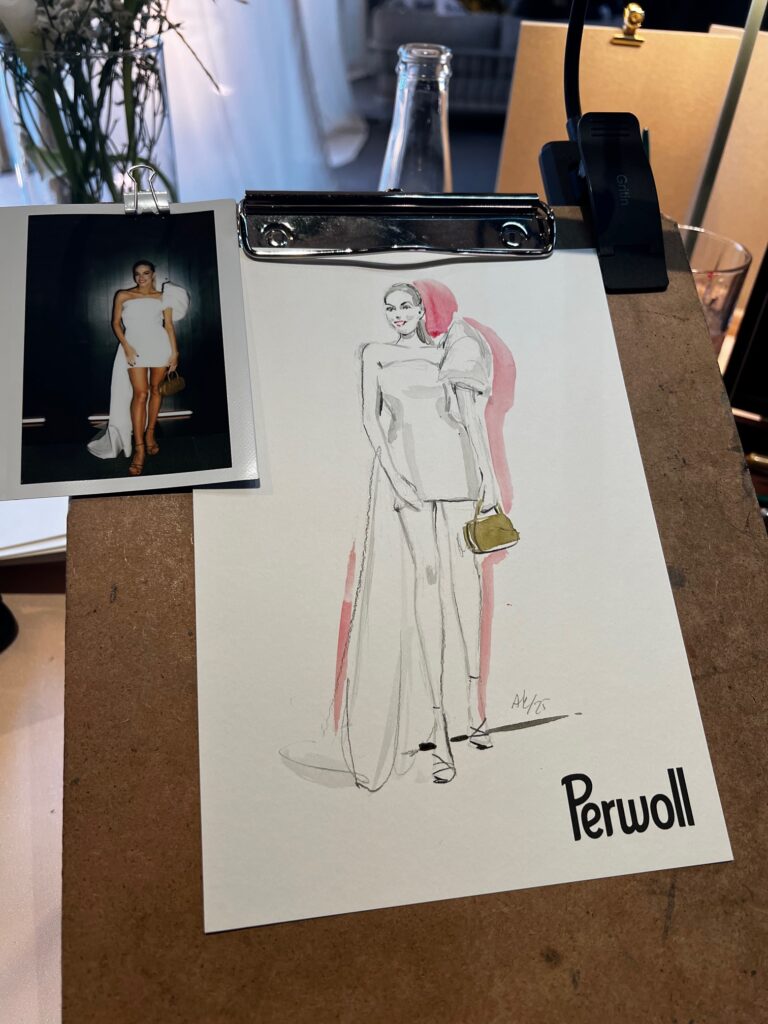 Jeder Gast wurde mit seinem Outfit des Abends auf einem Polaroid festgehalten und anschließend von mir in etwa 10 Minuten illustriert. So bildeten die Sketches eine bleibende Erinnerung an ein einmaliges Erlebnis.